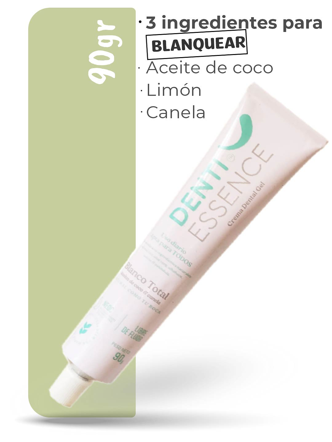 COMPONENTES: Complejo de Extractos y Aceites esenciales: Aloe Vera orgánico, Salvia, Caléndula, Albahaca, Menta, canela; Agua, Sorbitol, Goma arábiga, Goma xantana, Sodium coco-sulfate, Citrato de Zinc, Xilitol, benzonato de sodio, Hidroxiapatita, Dióxido de Titanio, Aceite de coco y Sal marina