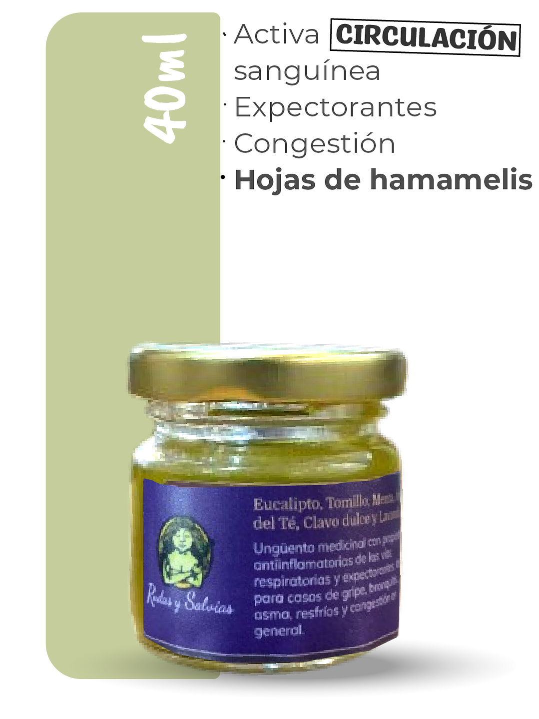 Ingredientes: Macerado de Hamamelis y Ciprés, en aceite de oliva, con manteca de cacao y cera candelilla. Enriquecido con aceites esenciales.